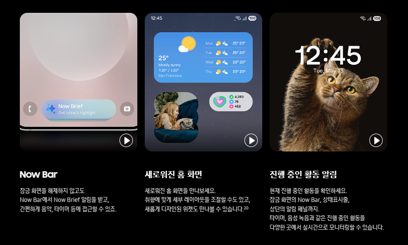 더 향상된 배터리 관리, 위젯 최적화, 개인정보 보호 기능이 추가되며, 직관적인 UX가 돋보입니다.