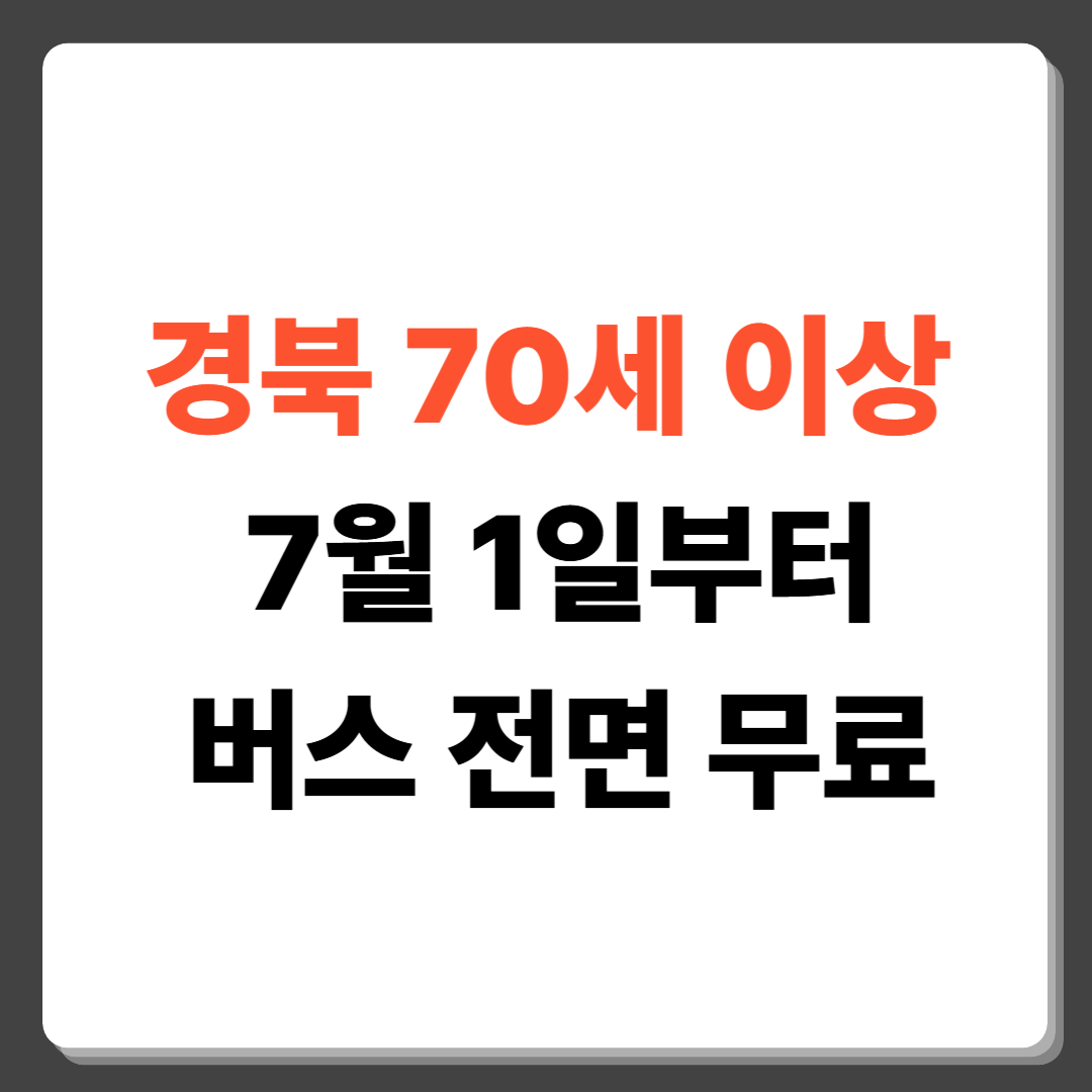 2025년 7월 1일부터 경북에 거주하는 70세 이상 어르신은 시내·농어촌버스를 전면 무료로 이용할 수 있습니다.