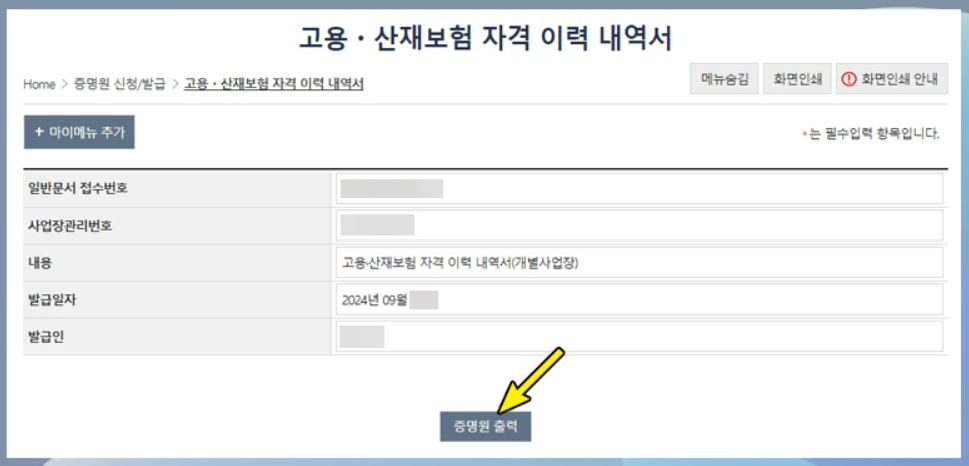 고용보험 홈페이지에서 간편하게 출력 가능