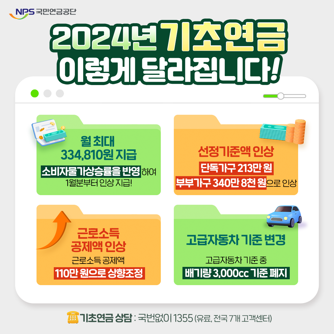 2024년의 경우, 단독 가구는 월 213만 원, 부부 가구는 월 340.8만 원이 기준입니다. 이러한 조건을 충족하는 경우, 기초연금을 신청할 수 있습니다.