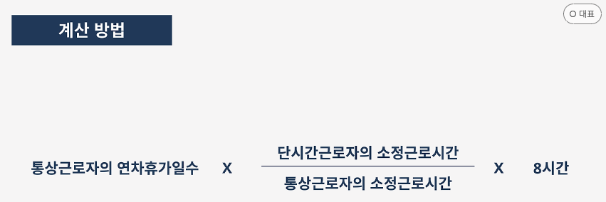 단시간 근로자의 연차휴가는 다음과 같은 공식을 통해 계산됩니다.