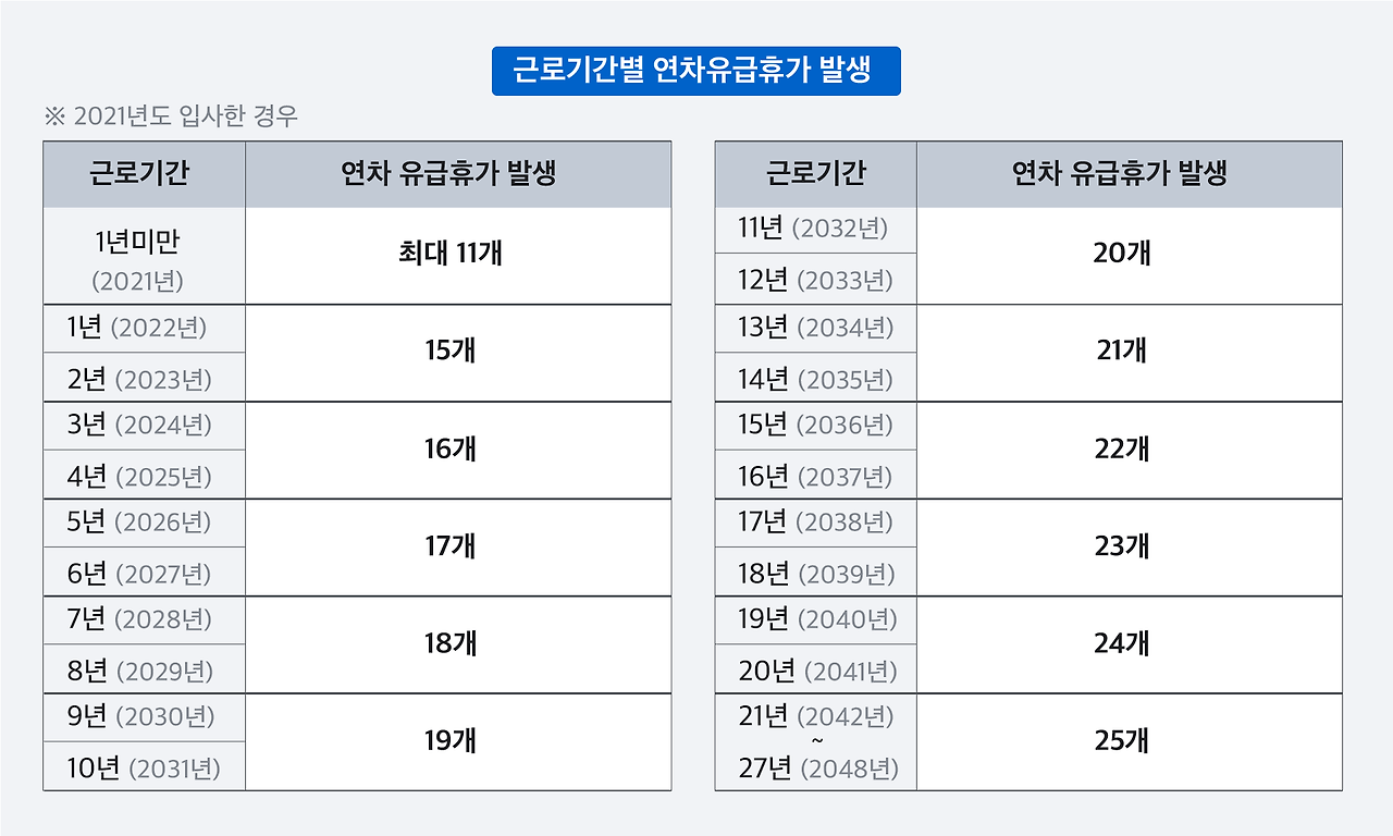- 정규직 근로자의 연차휴가 일수 를 기준으로 합니다.