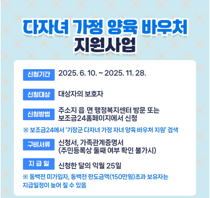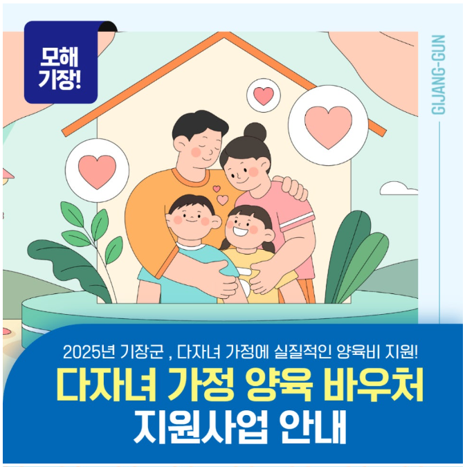 → ‘기장군 다자녀 가정 자녀 양육 바우처 지원’ 검색