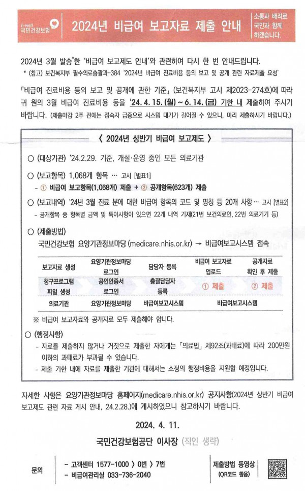 2024년부터 모든 의료 기관은 비급여 진료비를 정기적으로 보고해야 합니다. 이 보고는 환자들에게 제공되는 서비스의 투명성을 높이고, 의료 기관의 책임성을 강화하기 위한 조치입니다. 보고 의무는 의료 기관의 규모나 지역에 관계없이 적용되며, 이를 통해 환자들은 보다 정확한 비용 정보를 얻을 수 있습니다.