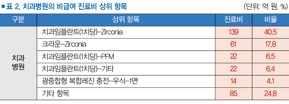 비급여 진료비 항목은 다양합니다. 예를 들어, 치과 분야에서는 "치아 임플란트 (1단계) - 지르코니아"가 139만 원으로 가장 높은 비율을 차지하고 있습니다. 이 외에도 "크라운 - 지르코니아"가 61만 원, "치아 임플란트 (1단계) - PFM"이 22만 원으로 보고되고 있습니다. 이러한 비용은 각 병원이나 클리닉에 따라 다를 수 있으며, 환자들은 사전에 충분한 정보를 확인하는 것이 중요합니다.