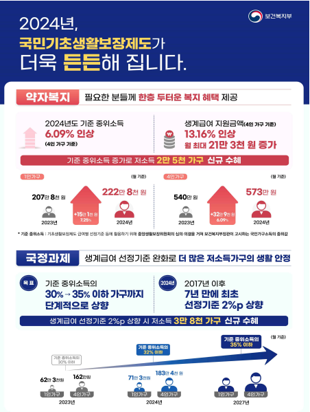 - 2024년 생계급여 선정 기준액이 올해보다 32% 인상될 예정입니다.