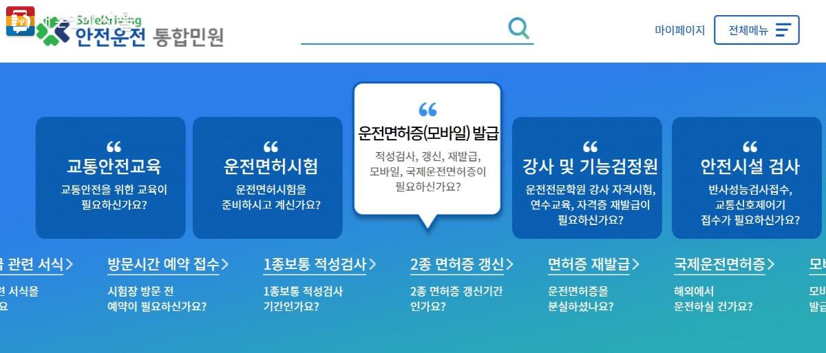 - '운전면허 갱신' 메뉴를 선택합니다.