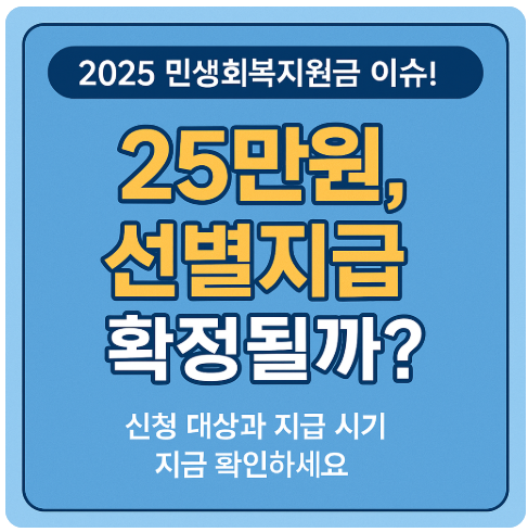 지원금 지급 여부와 신청 대상이 빠르면 7월 중 확정될 수 있으니, 관련 뉴스를 주의 깊게 살피고 미리 준비해두는 것이 좋습니다.