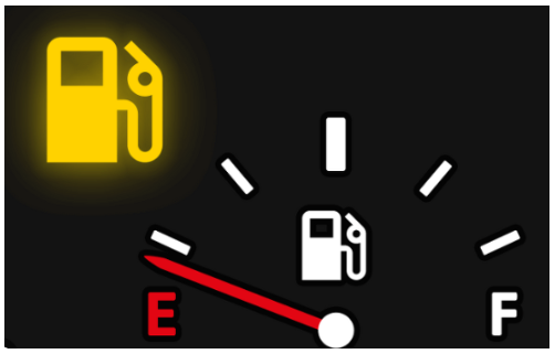 차량 계기판에 연료 모양의 노란불이 들어오면, 이는 연료가 부족하다는 신호입니다.