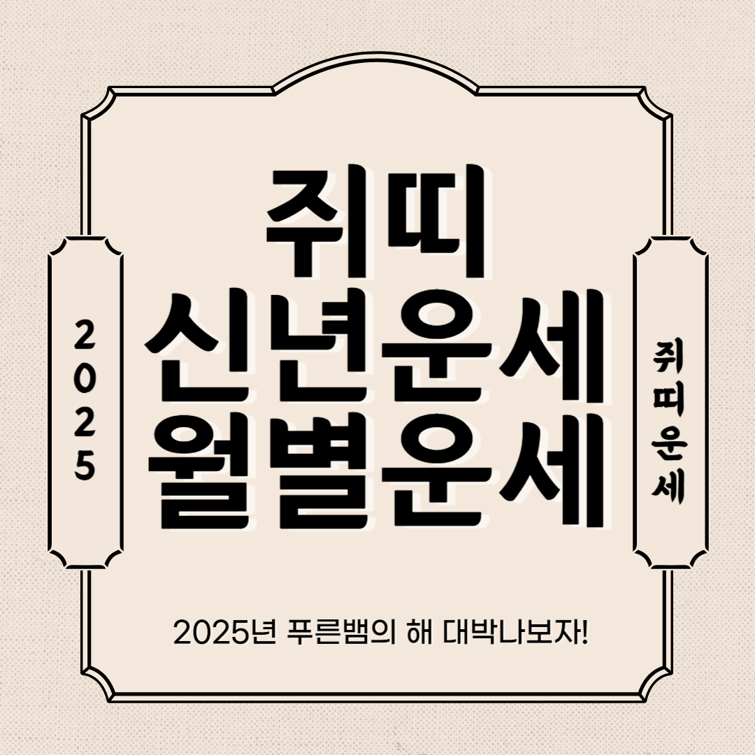 안녕하세요, 여러분! 2025년이 다가왔습니다. 새해는 새로운 시작과 기회의 연속입니다. 특히, 올해는 쥐띠에게 특별한 의미를 지니고 있는 해로, 각자의 삶에서 중요한 변화와 성장을 경험할 수 있는 시점입니다. 이번 포스팅에서는 1996년, 1984년, 1972년, 그리고 1960년생 쥐띠 분들을 위해 월별로 운세를 상세히 정리해 보았습니다. 각 월마다 어떤 기회가 기다리고 있는지, 어떤 부분에 주의해야 할지를 살펴보며, 더 나은 한 해를 만들어 가는 데 도움이 되길 바랍니다. 그럼, 시작해 볼까요?