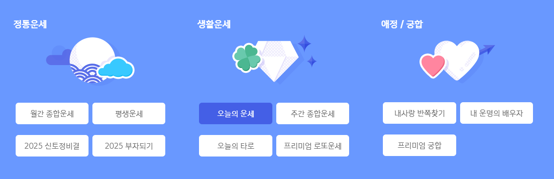 조금 더 자세한 운세를 알고 싶다면 아래 다양한 운세를 무료로 확인하세요! 감사합니다.