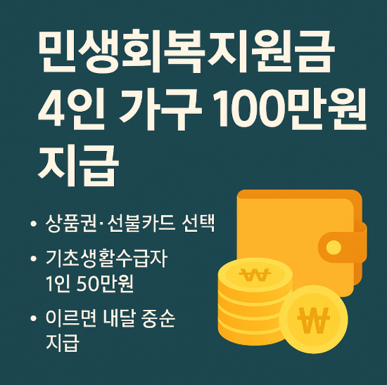 4인 가구 최대 지원액: 4×50만 + 4×2만 = 208만 원